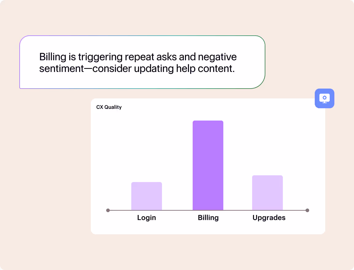 Track how conversations, sentiment, and outcomes shift across channels, segments, and automation versus human interactions.