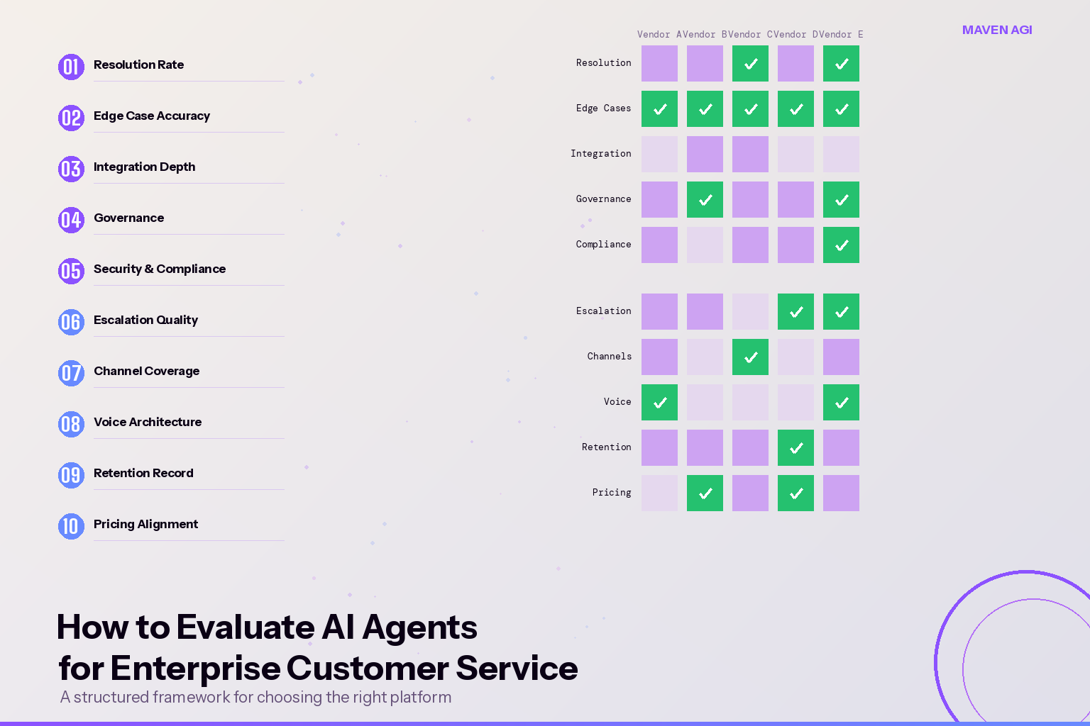 The criteria in this post are designed to surface those answers. Use them as a scorecard, run the POC with your hardest queries, and if you’re evaluating voice, call the live agent. The answers will make the decision clear.